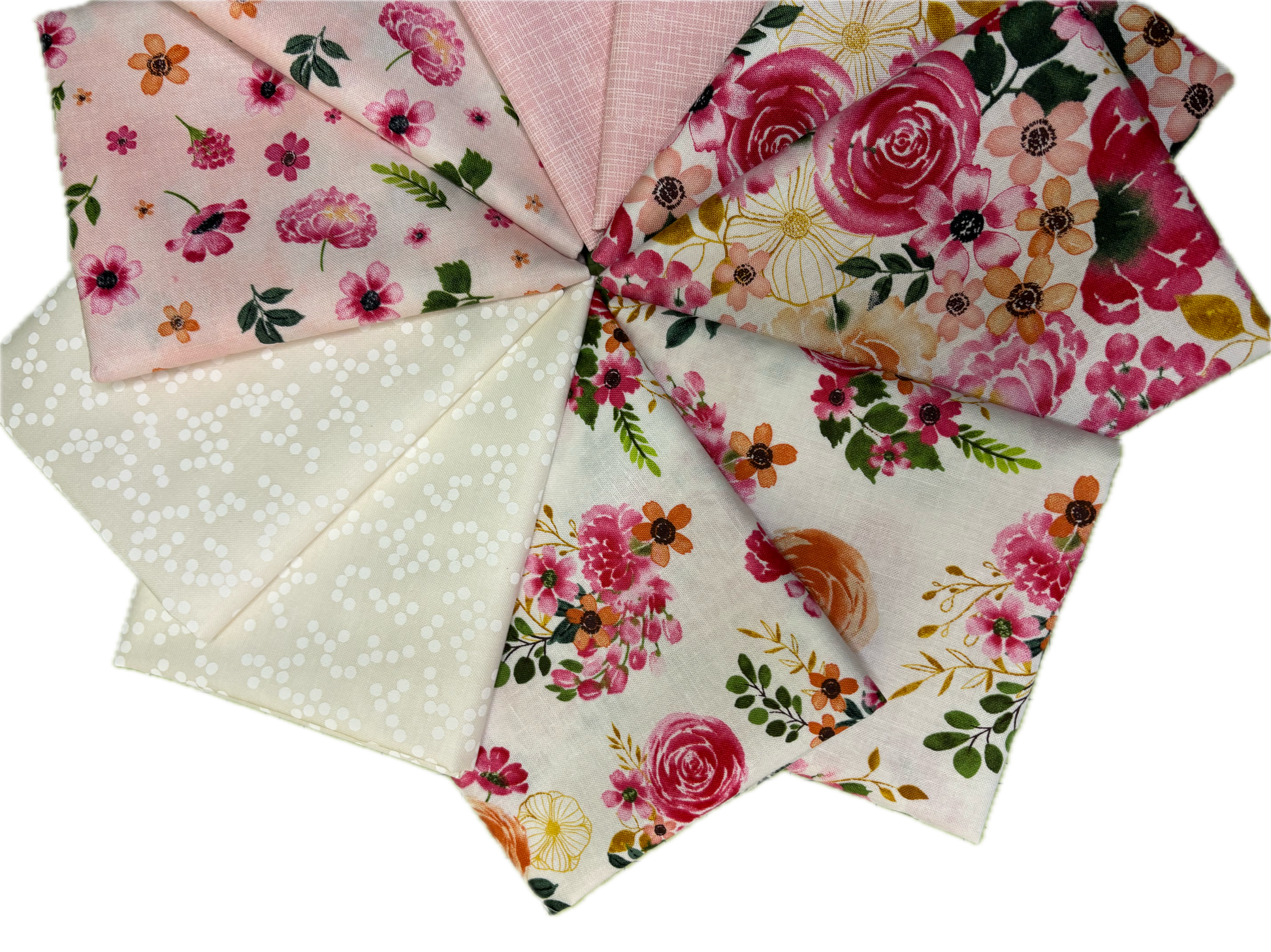 Our Fat Quarter Bundles are carefully curated to create a beautiful selection of fabrics to inspire your next project. This bundle includes beautiful florals from Wilmington Fabrics, Robert Kaufman and Dear Stella.